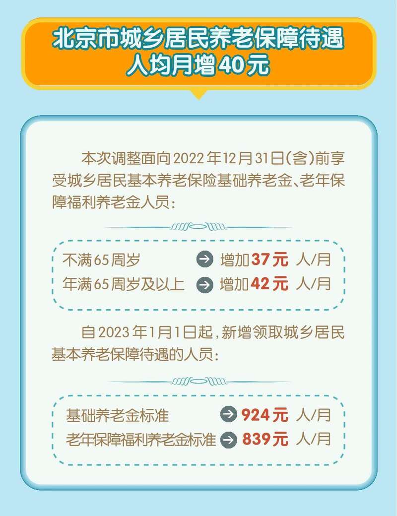 北京市今年继续调整城乡居民基本养老保险基础养老金和老年保障福利养老金标准,并从今年1月份起补发养老金,当月和补发的养老金将于7月15日发放到位。