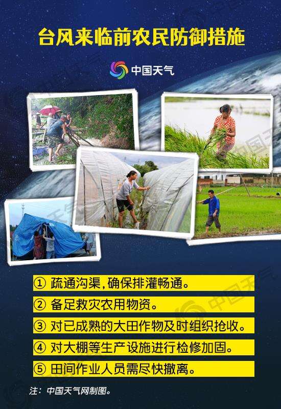农民朋友在台风消息发布后,对可能遭受台风袭击、发生洪涝灾害的地方早作准备,及时采取防灾避灾措施。对大田作物来说需疏通沟渠,开好田间排水沟,确保排灌畅通;备足救灾农用物资;对稻、玉米、大豆、瓜菜等大田作物已成熟的,及时组织抢收;对大棚等生产设施进行检修加固,同时及时组织田间作业人员撤离。