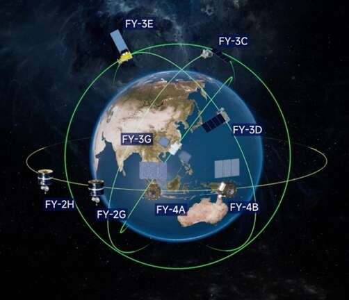 还有我国的静止气象卫星系列,如风云二号H星和G星、风云四号A星和B星等,定点于赤道79°E~133°E上空,能够对亚洲、大洋洲、非洲东部等地区进行更高频次的观测,也是对全球观测数据的有效补充。