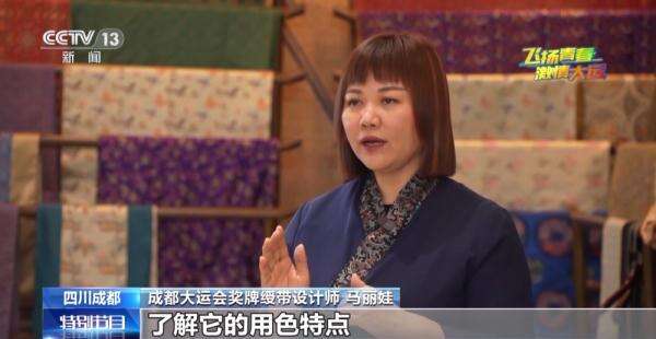成都大运会奖牌绶带设计师 马丽娃:我们要了解蜀锦的织造技艺,了解它的用色特点,然后我们才能设计出符合这个蜀锦织造应用的这样的一个图案。我们当时画了100多个稿次,不断地去选,去更新。