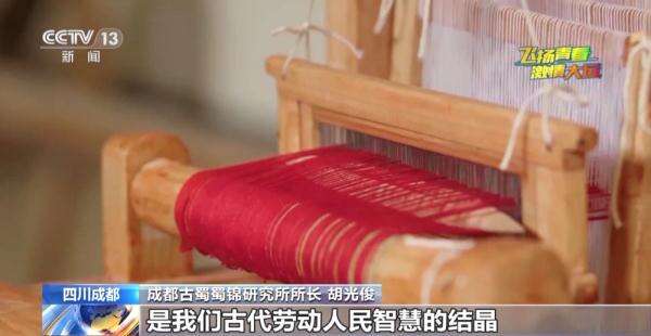 成都古蜀蜀锦研究所所长 胡光俊:蜀锦的织造技艺是我们古代劳动人民智慧的结晶,这是我们九十年代以前使用的机型,从那个小花楼木织机演变到了这种机型。