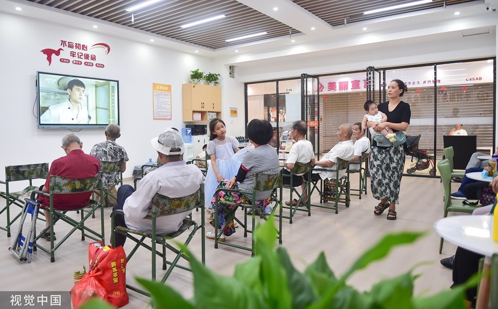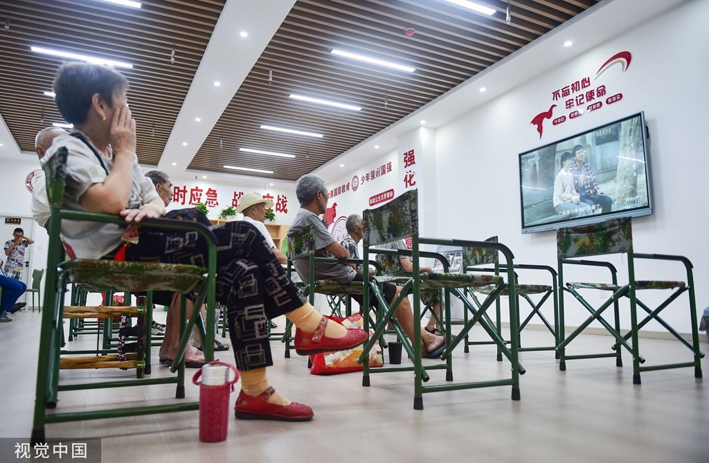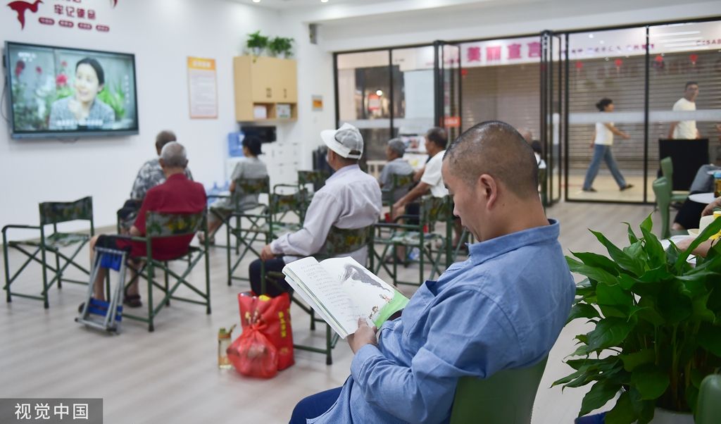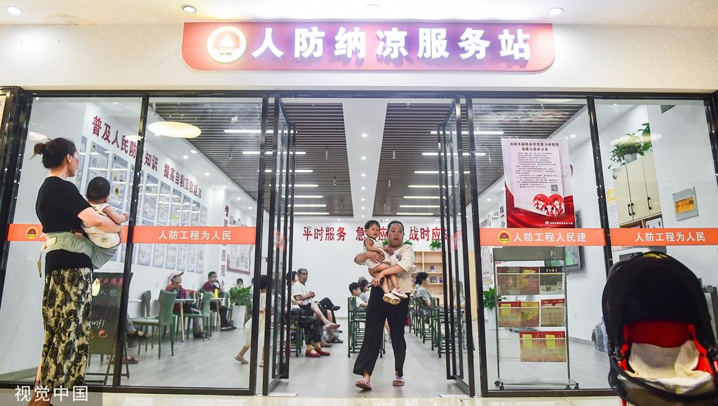 2023年7月14日,河南洛阳,在涧西区周山大道地下人防工程避暑纳凉点,市民在阅读休闲。