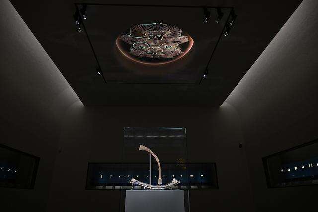出土于浙江良渚有着“琮王”美誉的玉琮开幕当天就被观众围观,挨挨挤挤的脑袋紧贴着展柜只为一睹神人兽面纹的真容。方向明介绍,这件玉琮1986年5月31日在浙江反山遗址12号墓出发掘出土,他不是发掘的亲历者,彼时他还是一个大二的学生。在1988年第一期《文物》杂志的考古简报上,良渚考古的前辈王明达先生就对外公布了这一发现。2005年反山遗址的考古报告出版后,浙江省文物考古研究就把这件玉琮随同其他墓葬出土的文物移交给了浙江省博物馆。