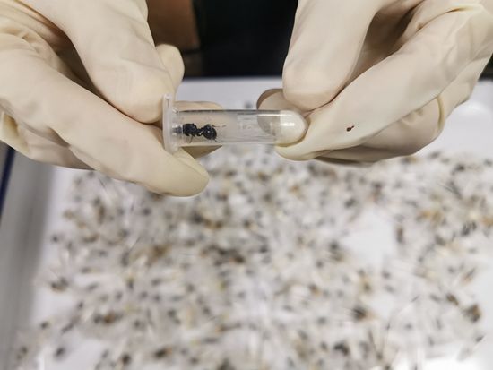 “我们在机检发现这票快件存在可疑风险后立即实施开拆查验,发现实货为3支透明塑料管,管内各装有1只体型较大活体蚂蚁。每只塑料管包装精细,均开有气孔,有浸渍液体的棉花保湿层。”在介绍该案查发过程时,浦东机场海关快件监管二处查验二科科长潘同庆说。