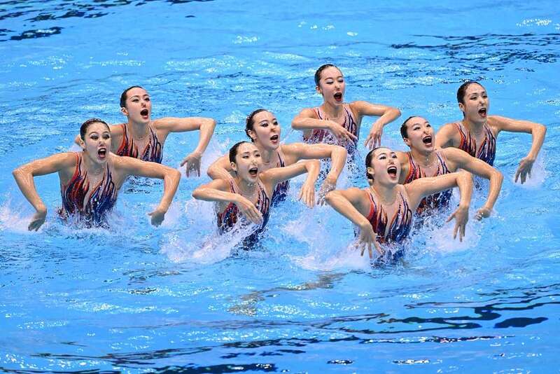 中国队在花样游泳集体技术自选决赛上。视觉中国供图