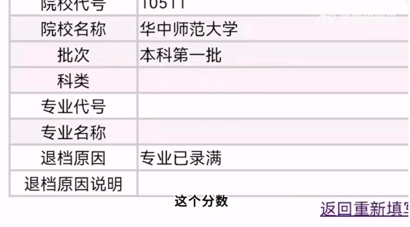 据唐尚珺介绍,7月18日下午,他查询录取情况发现,其档案被投放到华中师范大学,后被退档,退档原因显示“专业已录满”。