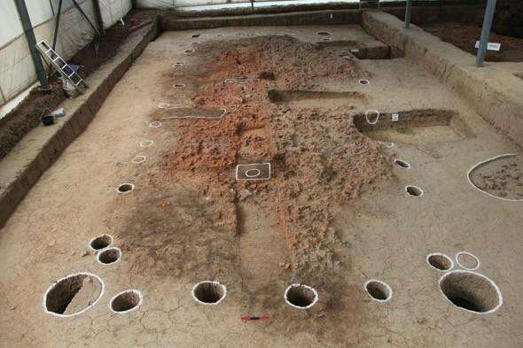 中间的居住区,包括2处红烧土倒塌堆积的5座房址,其中最大一间红烧土堆积房址及其附属建筑的面积约达97.5平方米。“在当时来看,这很显然不是普通居民能够拥有的居住面积。”周润垦说,房址的面积之大,也反映了当时社会分化的情形。