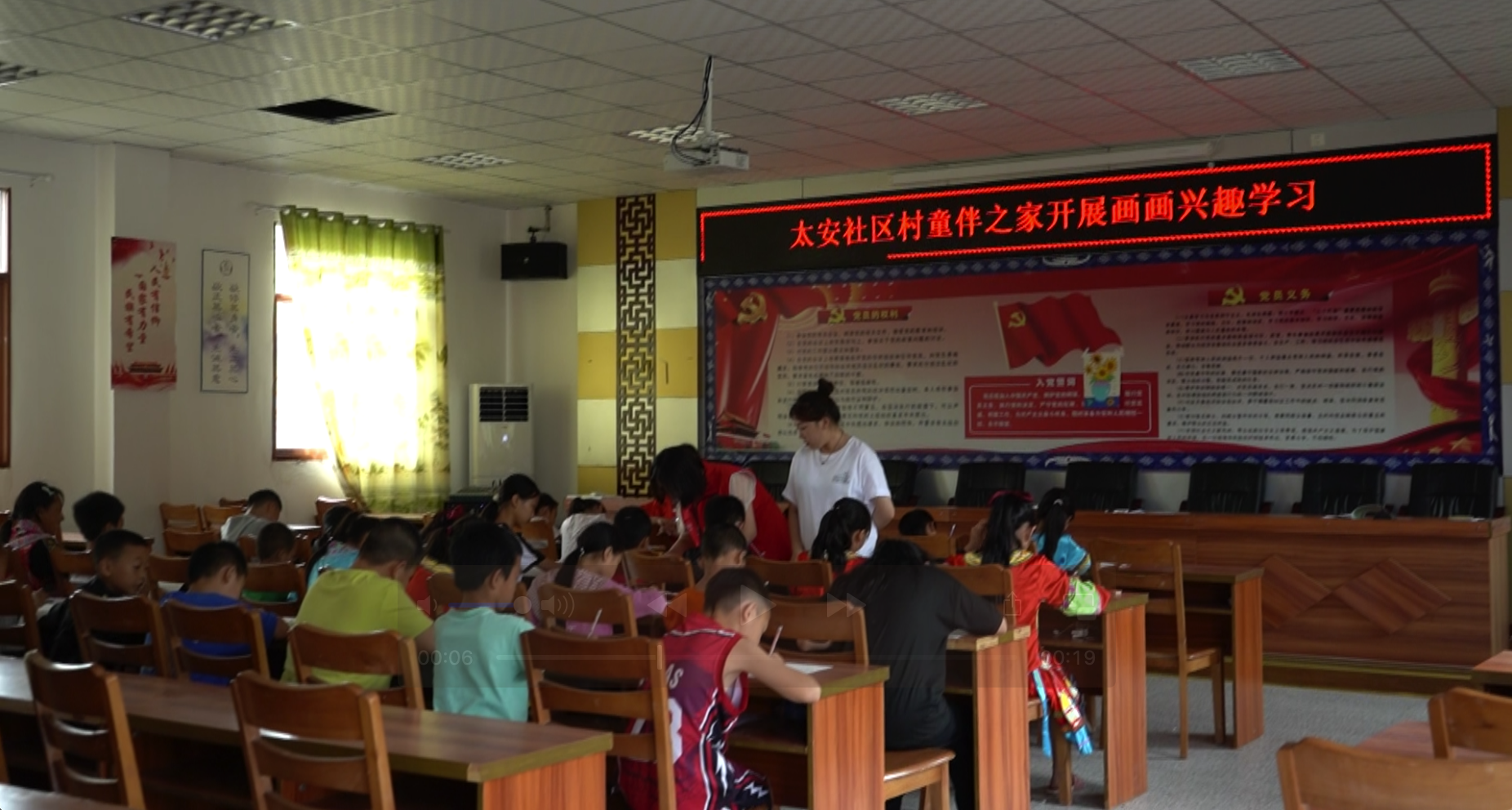 7月2日,当记者走进太安社区“童伴之家”时,陶小梅正带着孩子们学习画画,和她一起辅导孩子们还有来自专业机构的志愿者。