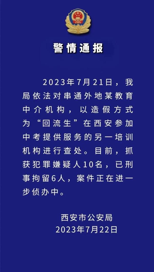 西安警方:再查处一造假“回流生”培训机构,抓获10人