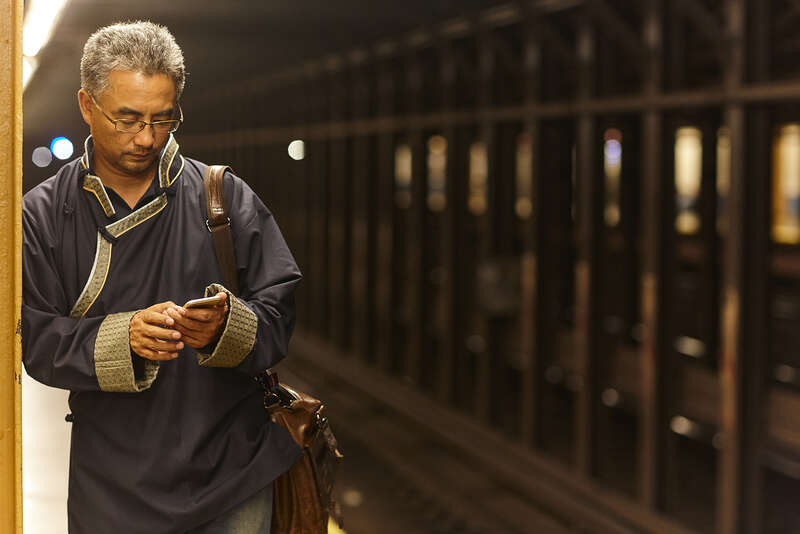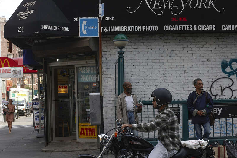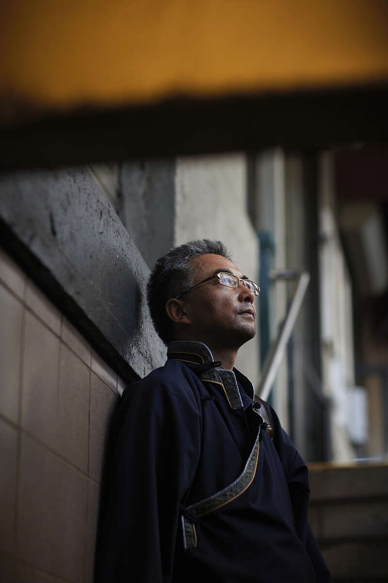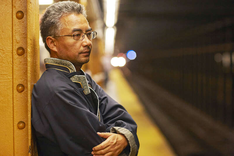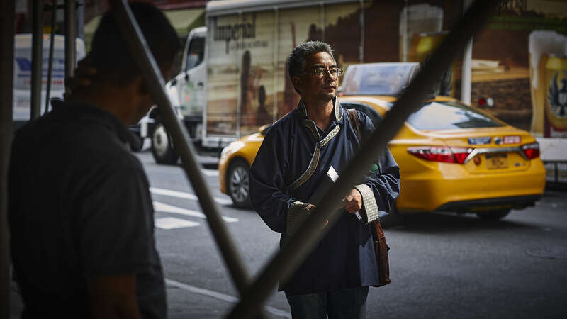 还有一组照片的背景是纽约的地铁站。地铁给人一种异乡孤独的漂泊感,在纽约的时日,刘大雁时常会在中央公园跑步,她常会戴上耳机,听中国电影的台词。“这让我特别满足。”她说。那天拍摄时,万玛才旦和刘大雁在地铁上谈论电影,是一种与台词所唤起的孤独自我重叠,却又完全不同的处境,“他坐在我旁边,讲电影,让我想起在北京的那群电影人,即便在异国他乡,但那一刻,你会觉得你还要回到你自己的地方,他就带给我这种感觉。”万玛才旦在纽约出现就像某种连接,接通着远方的祖国土地。这次短暂的碰面和拍摄,让刘大雁觉得“回到了自己的历史里”。