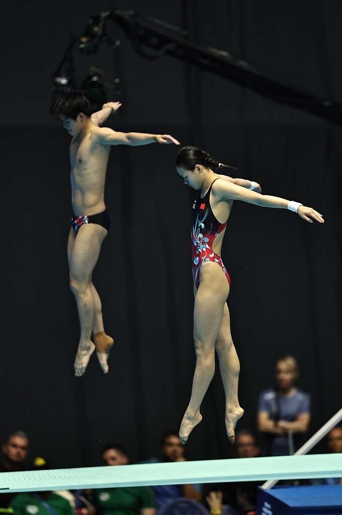 今天下午,中国组合朱子锋 /林珊获得本届游泳世锦赛跳水混双三米板金牌。视觉中国供图