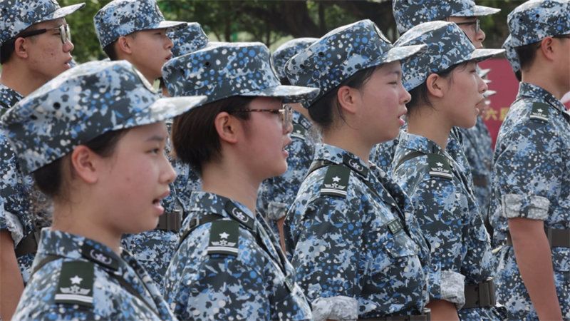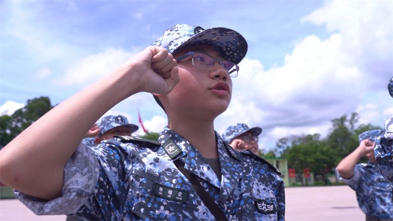 升国旗仪式结束后,全体学员斗志昂扬,庄严宣誓,眼神中充满了坚毅,做好了迎接军营生活的准备。