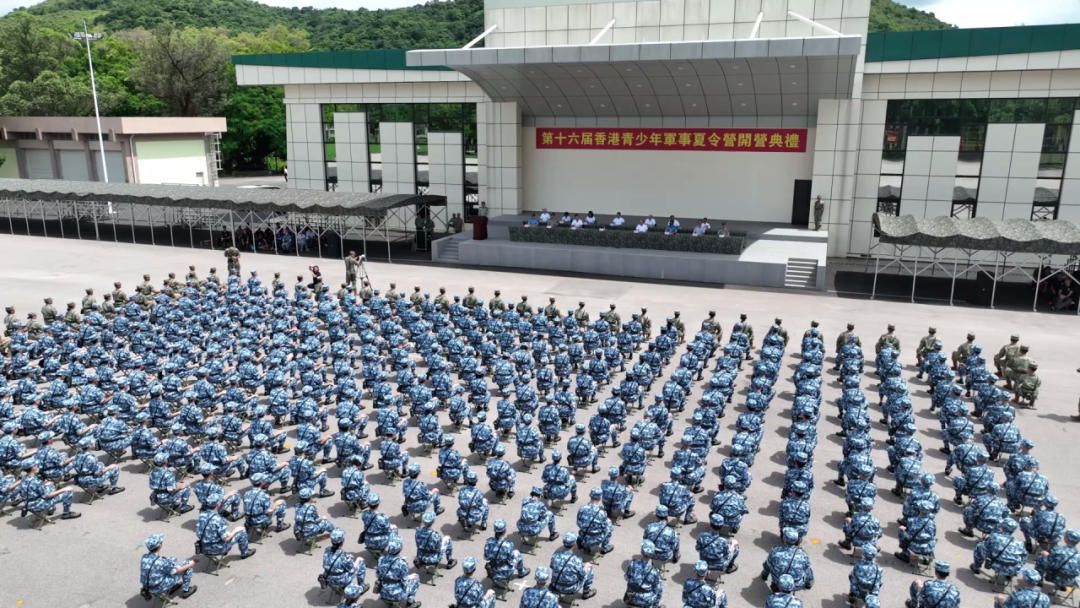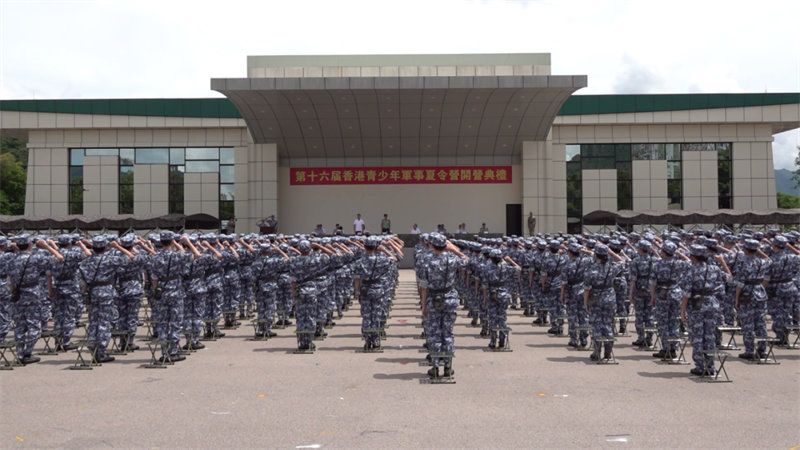 今天,第十六届香港青少年军事夏令营在驻香港部队新围军营举行开营典礼,来自香港百余所学校的青少年精神抖擞,整齐列队,开始自己的军营生活。