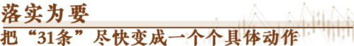 一分部署,九分落实。“31条”的最后三条,就是关于组织实施的要求。围绕“31条”,“1+N”配套措施里的“N”,即将陆续公布,令人期待。