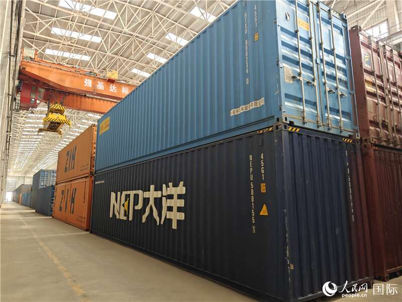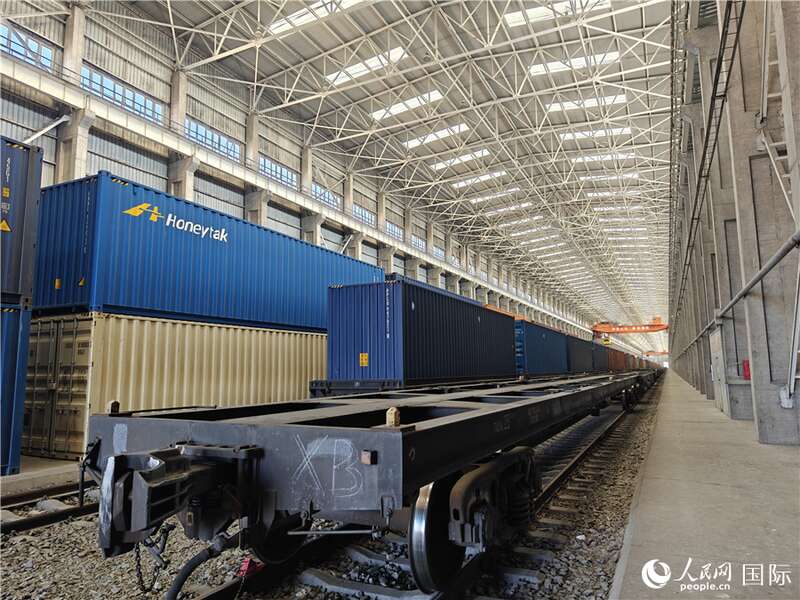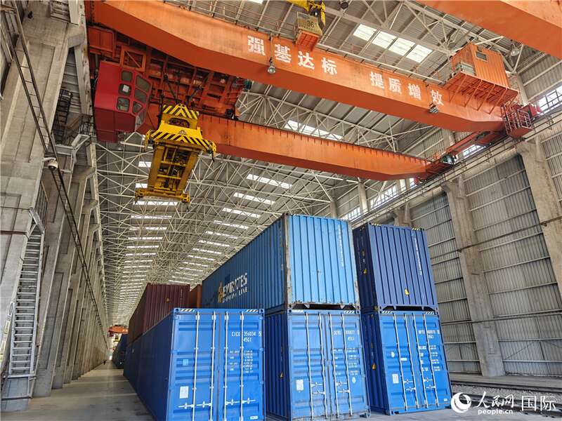 阿拉山口站室内集装箱换装库。人民网记者 刘洁妍摄