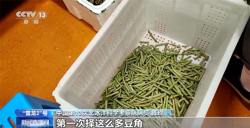 中国第13次北冰洋科学考察队队员 陈玲:我平时主要是做海洋化学那一块,第一次择这么多豆角。
