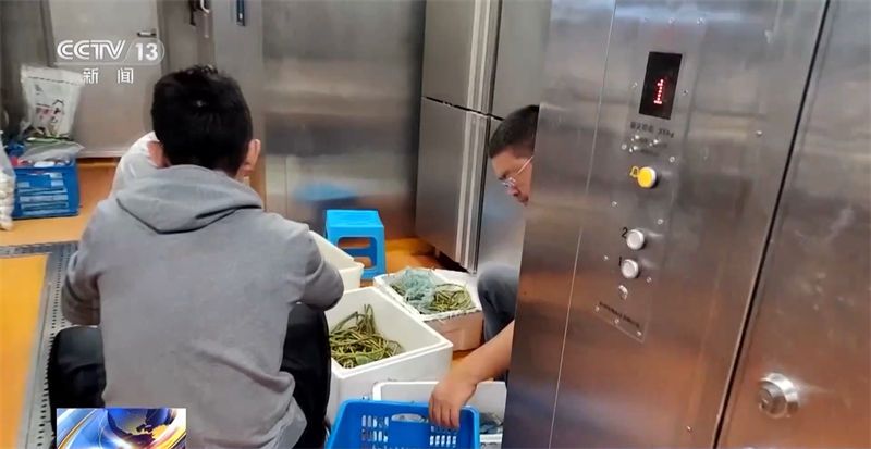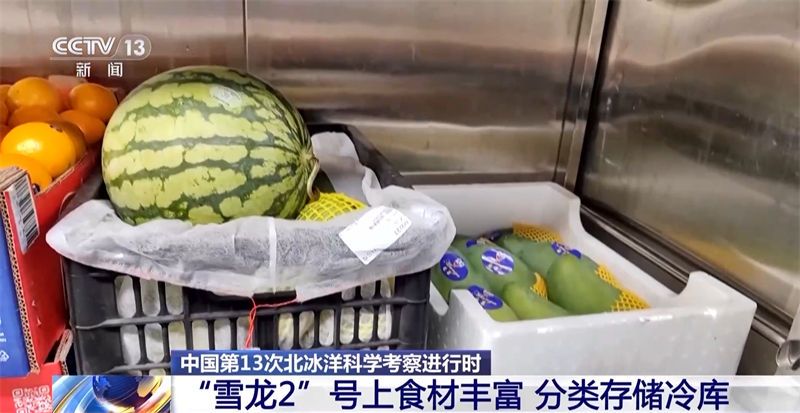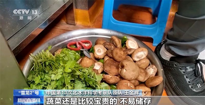 中国第13次北冰洋科学考察队领队 王金辉:菜的质量,过了十天了,都还挺好的,能保持到现在已经非常不容易了。香菜,十多天了,还是挺好的。蔬菜还是比较宝贵的,不易储存,越到后面越宝贵。我们还有一个柜子,那里面相当于是一个缺氧的环境,过了一个月以后,那个箱子才会去开启,比常规的储存方式好一点。