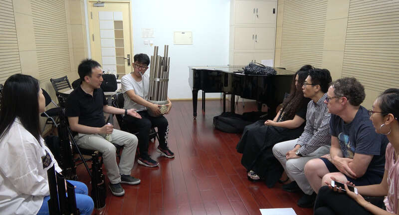蒙柯卓兰、高迪·哈博、于飞等音乐制作人在上中国传统乐器课