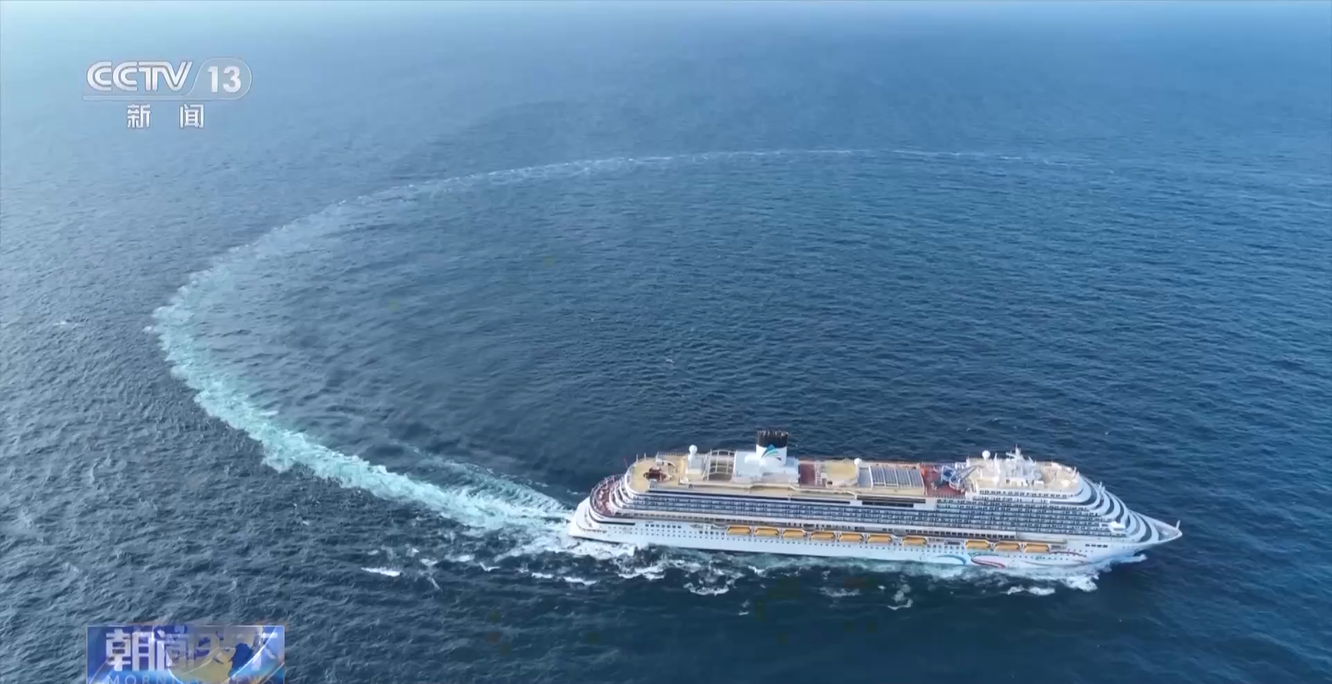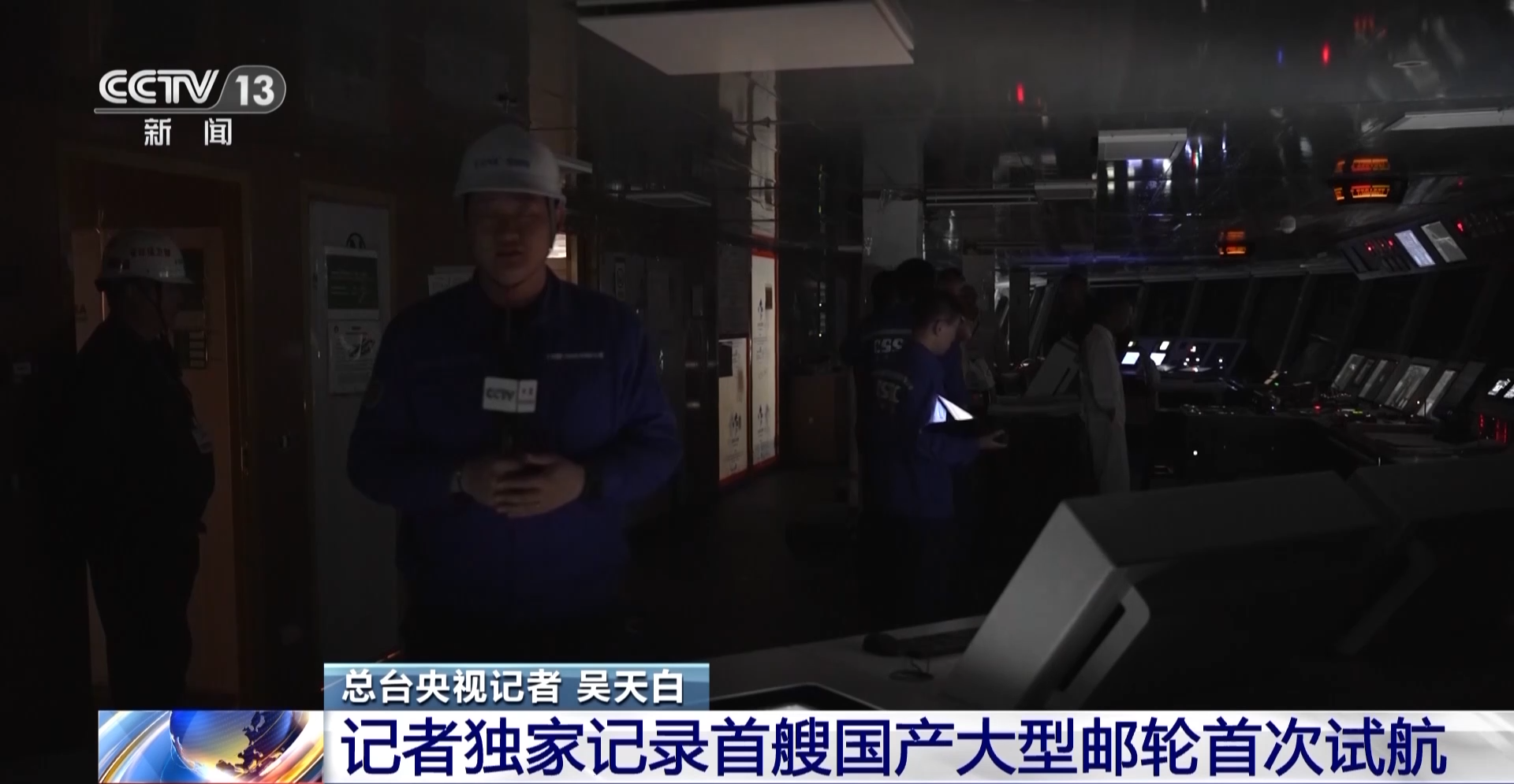 总台央视记者 吴天白:测试工作人员告诉我,现在正在做的叫做“Z”形操作试验,邮轮会在20海里每小时的速度下,先把船舵往右打10度,看船什么时候可以完成向右偏10度的动作。再把舵往左打10度,计算船身向左10度需要的时间。船会在海上走出一个“Z”字形航迹,来检验船舵的灵敏性。
