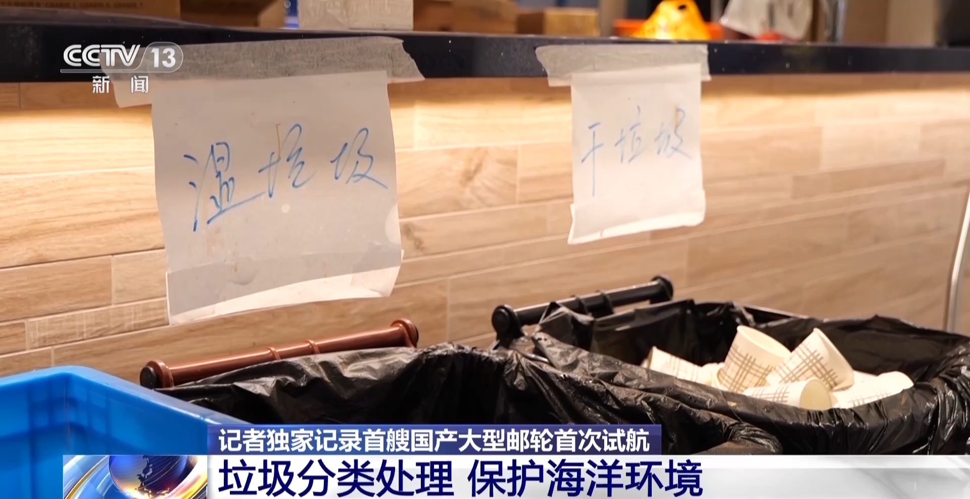 1200多人连续八天的海上生活,会产生大量厨余垃圾和生活垃圾,后勤保障工作人员还需要每天对垃圾进行分类处理,将干垃圾打包压缩成袋,放置于垃圾桶内,之后要带回陆地进行处理。湿垃圾容易腐烂产生异味,就需要在船上进行处理,满足规范要求后进行排放。