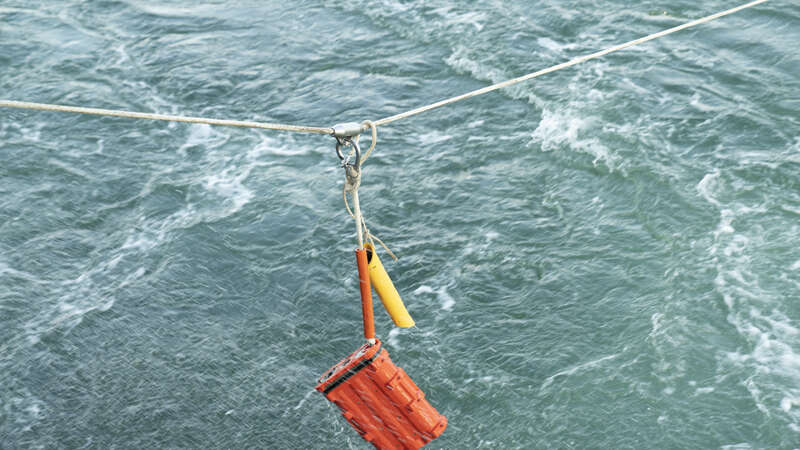 海底地震勘探节点采集装备“海脉”工作示意。