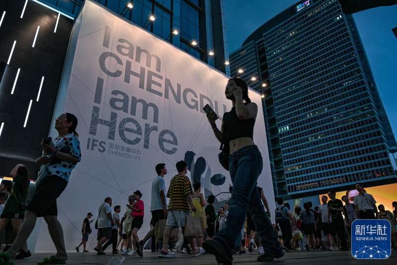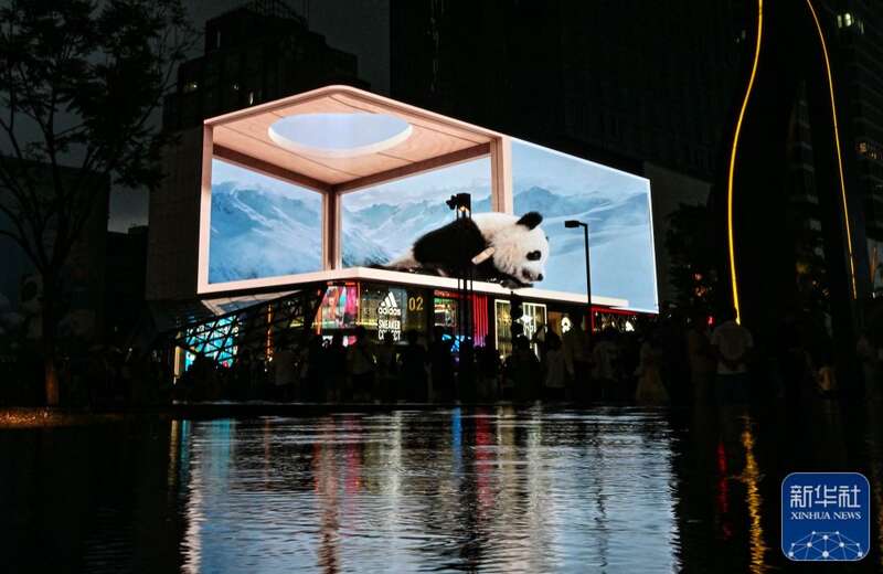 ↑7月25日,成都太古里的3D裸眼大屏前人头攒动。新华社记者 晋美多吉 摄