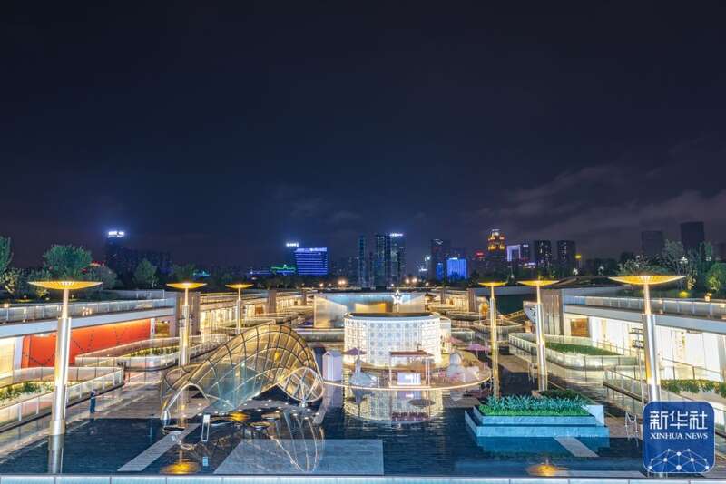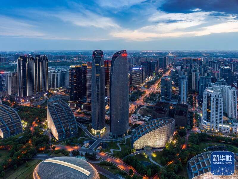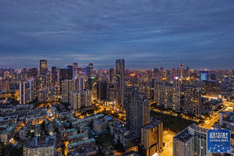 ↑俯瞰夜色下的成都市金融城(7月18日摄)。新华社发(王琦摄)