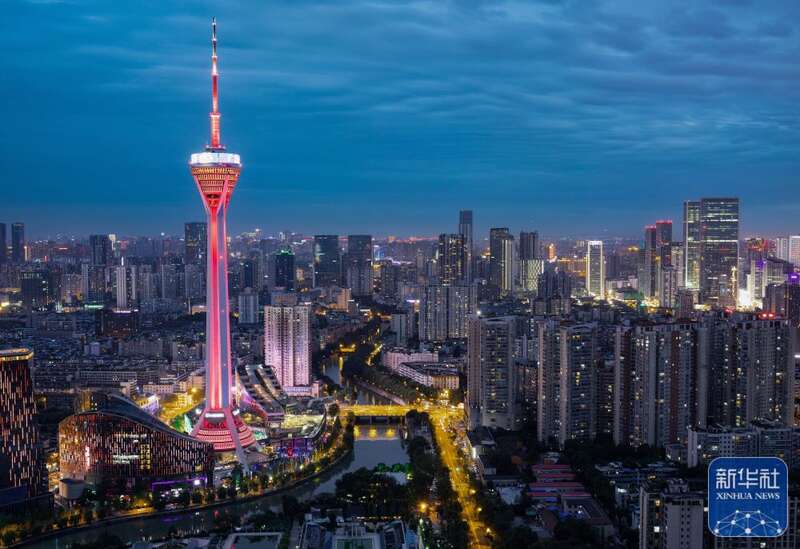 ↑这是7月25日拍摄的成都环球中心一带夜景。新华社记者 黄伟 摄