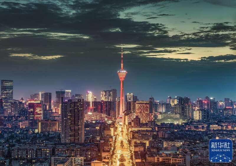 ↑成都市中心夜色(7月5日摄)。新华社记者 江宏景 摄