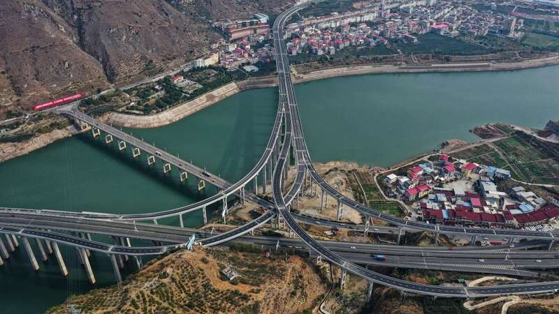 2022年12月30日,俯瞰峨眉至汉源高速公路流沙河枢纽互通(无人机照片)。新华社发(冉闯 摄)