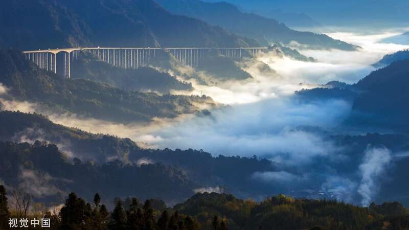 云海中若隐若现的雅西高速 图片来源:视觉中国