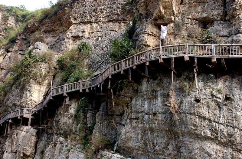 一焚一激之后,一条条栈道沿着被凿开的路径铺展开来,翻山越岭。
