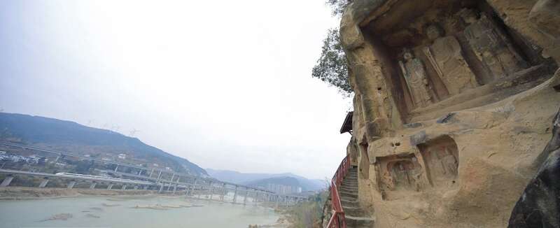 值得关注的是,就在千佛崖的河对岸,几条现代化交通网错落有致地交织在一起。今日的广元是名副其实的“交通博物馆”。老川陕路、京昆高速、宝成铁路、西成高铁、嘉陵江航道在这里交织“奔腾”。横渡嘉陵江,仿佛穿越古今。