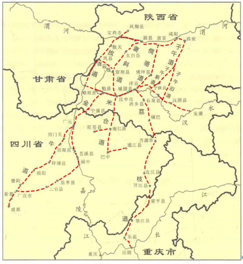 蜀道主要交通线路示意图 图片来源:李久昌《中国蜀道·交通线路》(第一卷),三秦出版社