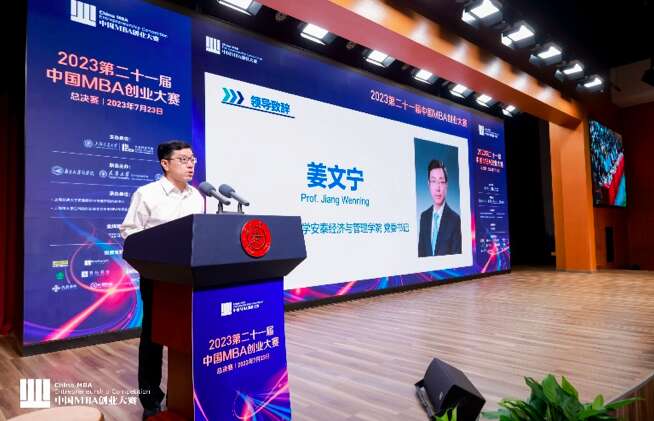 上海交大安泰经管学院党委书记姜文宁为大赛致辞。上海交大安泰经管学院供图