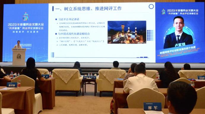 在“锐评新疆 创新网络评论”篇章中,邀请了中国青年报编委、评论部主任冯雪梅,天津市河西区委网信办应急指挥中心副主任王攀,金华媒体集团融媒一部副主任、时评账号“徐记观察”负责人徐健辉,“明叔杂谈”账号负责人明金维,自治区人民检察院政治部宣传处副处长、“新疆检察”微博矩阵负责人覃辉君,新疆日报社理论评论部主任沈雅屏等,围绕“如何紧贴时代命题,讲好中国新疆故事”作交流发言。