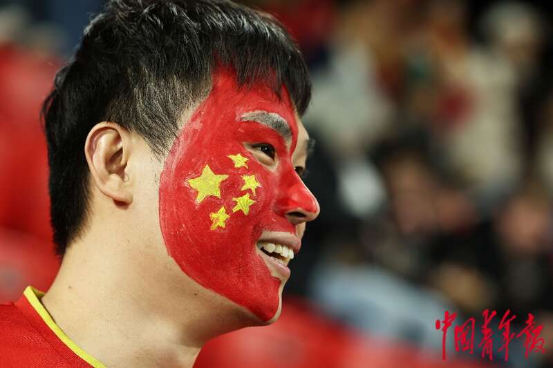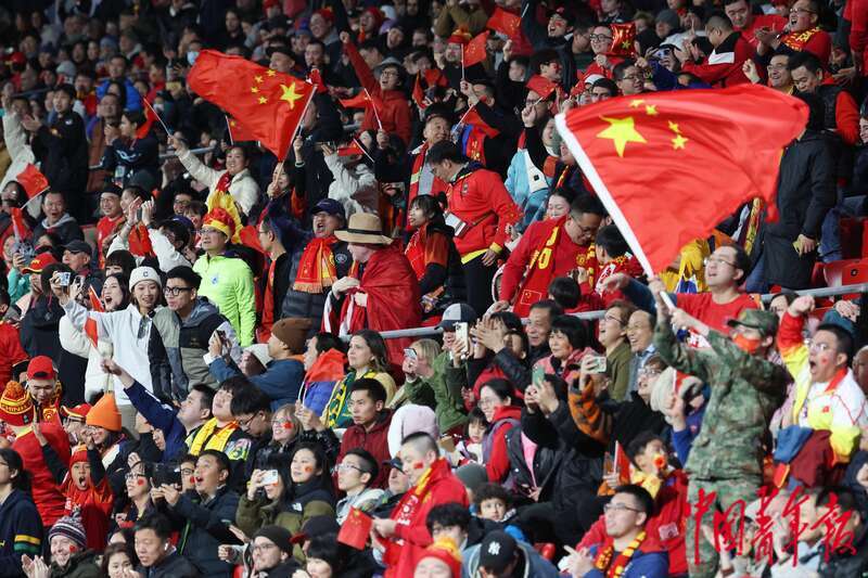 7月28日,澳大利亚阿德莱德市欣德马什体育场,2023女足世界杯D小组的第二场比赛中,中国球迷庆祝中国女足进球。刘占崑/摄