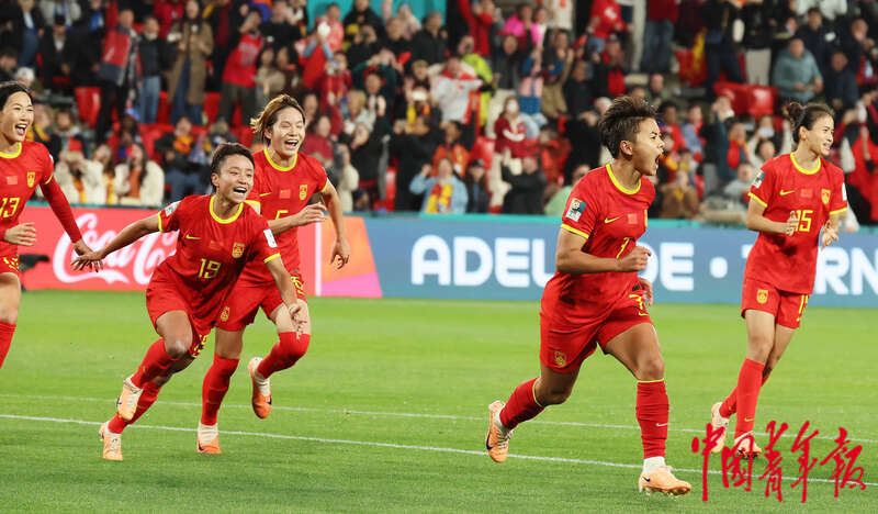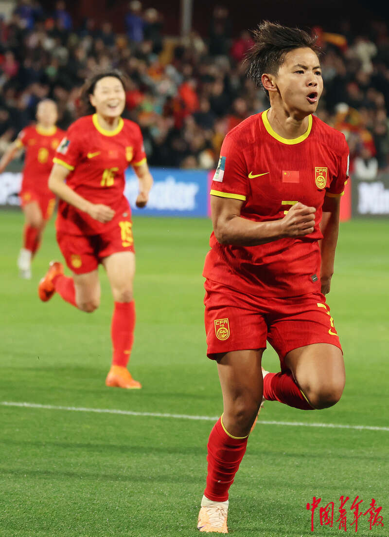 7月28日,澳大利亚阿德莱德市欣德马什体育场,2023女足世界杯D小组的第二场比赛中,罚入点球的王霜奔跑庆祝。刘占崑/摄