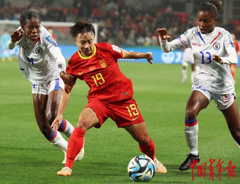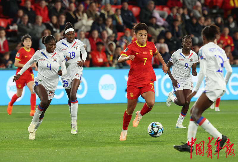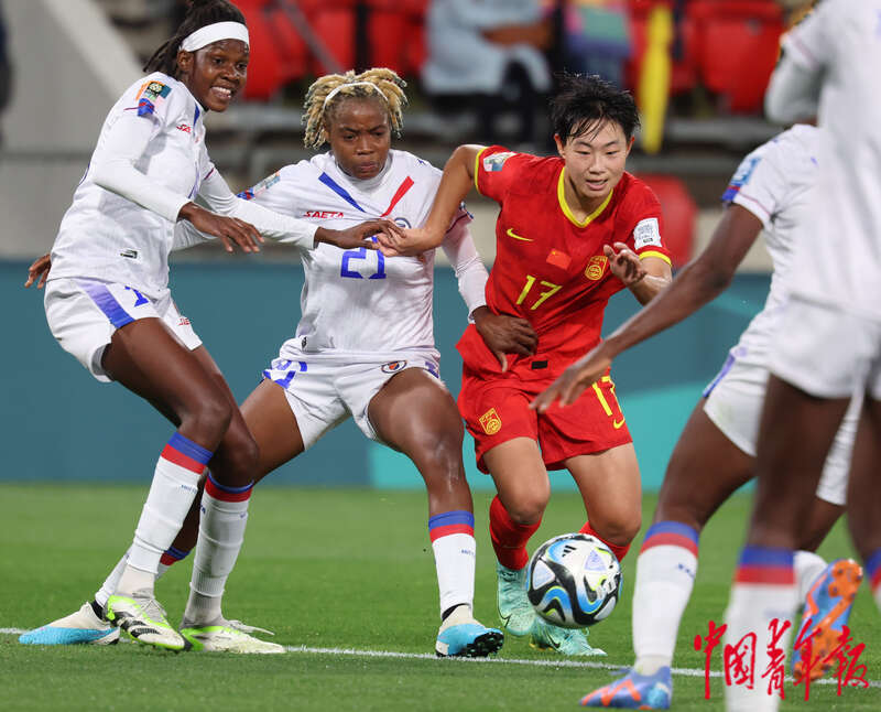 7月28日,澳大利亚阿德莱德市欣德马什体育场,2023女足世界杯D小组的第二场比赛中,中国队17号吴澄舒突破被多人盯防。刘占崑/摄