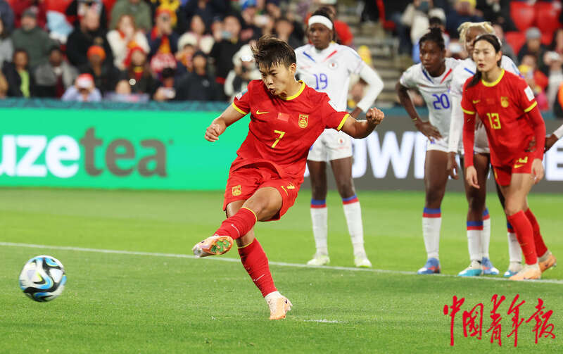 7月28日,澳大利亚阿德莱德市欣德马什体育场,2023女足世界杯D小组的第二场比赛中,中国女足7号王霜主罚点球。刘占崑/摄
