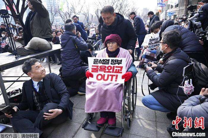 2023年3月1日,日本强征劳工受害者梁锦德在首尔参加集会。