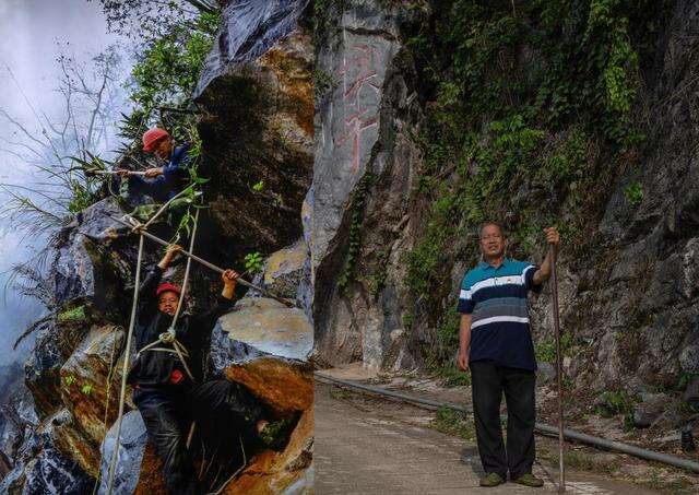 “我们村只有15户人家,村子长在悬崖峭壁之上,以前进出村的路是只有两尺宽的悬崖路,八九十岁的老人有10多20年没出过村。村民家养的大肥猪,找了七八个人帮忙抬出去卖,抬到悬崖那个地方,脚一滑,连猪连人跌倒了,猪摔死了,人还受了伤,主人家坐在地上大哭:完了,一年喂的猪全部泡汤了!孩子出去读书来回要走两三个钟头,凌晨5点,大人打着火把,翻越悬崖送他们去上课。”说起往事,李华明感慨万千。2003年,他带着村民挥起大锤砸向峭壁上的巨石。修路真难!悬崖下有人家、电线,不能用炸药,只能用铁锤打,用錾子凿,用膨胀剂撑。铁锹断了,换;手磨破了,忍;人滚下坡,爬起来!