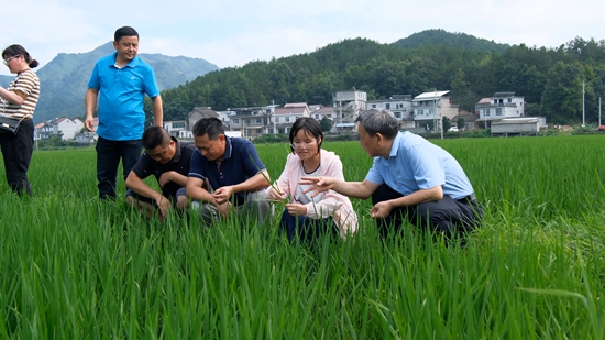 安庆职业技术学院博士服务小分队在了解农作物生长情况。翟程玲/摄