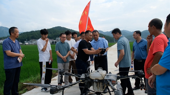 安庆职业技术学院博士服务小分队在了解无人机作业情况。翟程玲/摄