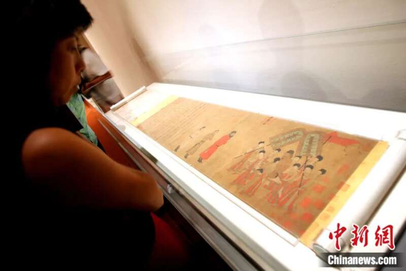 观众参观北京故宫博物院藏品《步辇图》。王丽南 摄