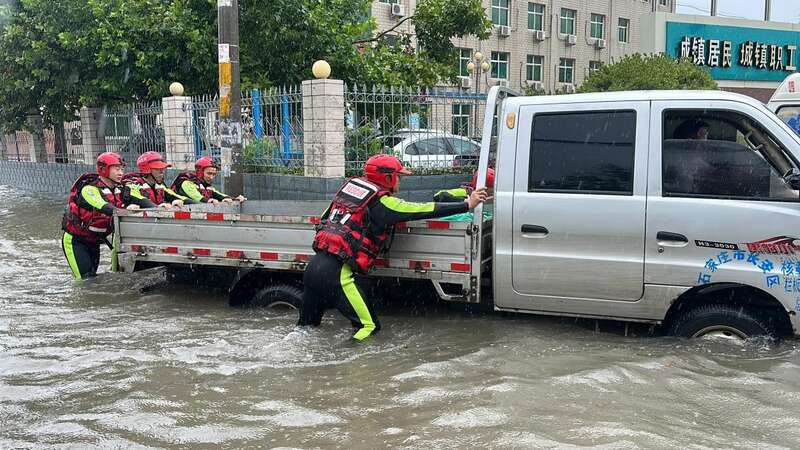 石家庄正定县消防救援大队青年指战员救援被困车辆及人员。