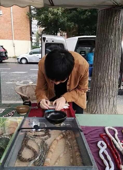 费滢在欧洲摆摊卖珠子