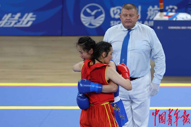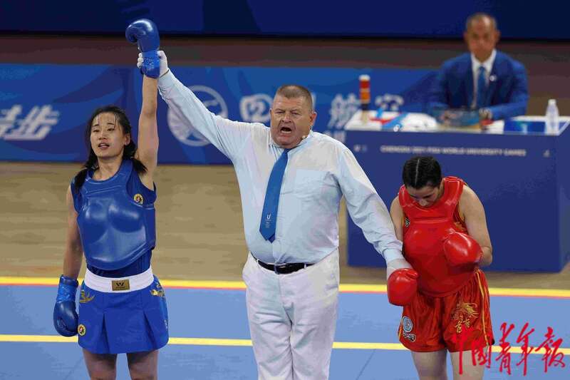 8月3日上午,成都大运会武术项目散打比赛,中国女将李志勤在女子60公斤级决赛中2比0战胜土耳其选手轻松夺冠!