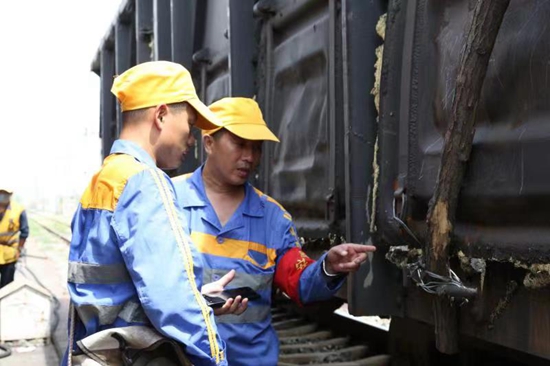 今年的暑运,气温明显高于往年,山东各地连续发布高温预警,最高气温直逼40摄氏度。在烈日炙烤下,地表加上车皮散发的热量,“铁胡同”里的温度达到60多摄氏度。我们不惧酷暑,每天要工作10个小时,确保胶济铁路的运输畅通。