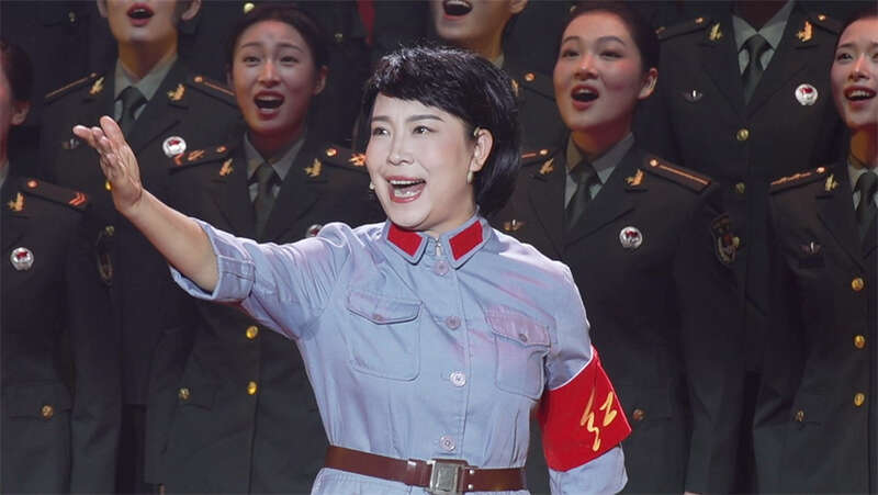 组歌主创在经典传承中大胆创新。《军民大生产》在歌词中使用了大量陕北特色的创作元素,从“青青的山”“白白的云”“红红的大枣”“甜甜的杏”等陕北自然风貌、代表特产,到成为革命记忆的“杨家岭的窑洞”“枣园的灯”,再到“毛主席号召大生产”“三五九旅勇当先”“南泥湾哟赛江南”……一部陕北革命根据地的发展史浓缩在歌曲中。(本文图片均为组歌《从南昌走来》演出剧照,由出品方提供)